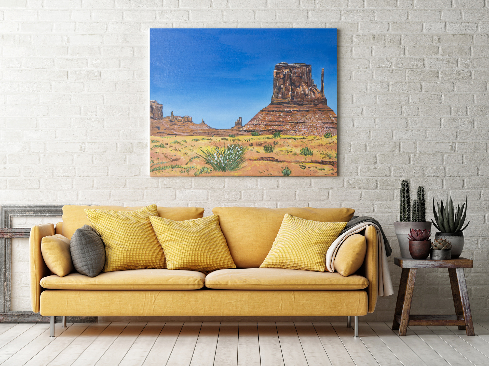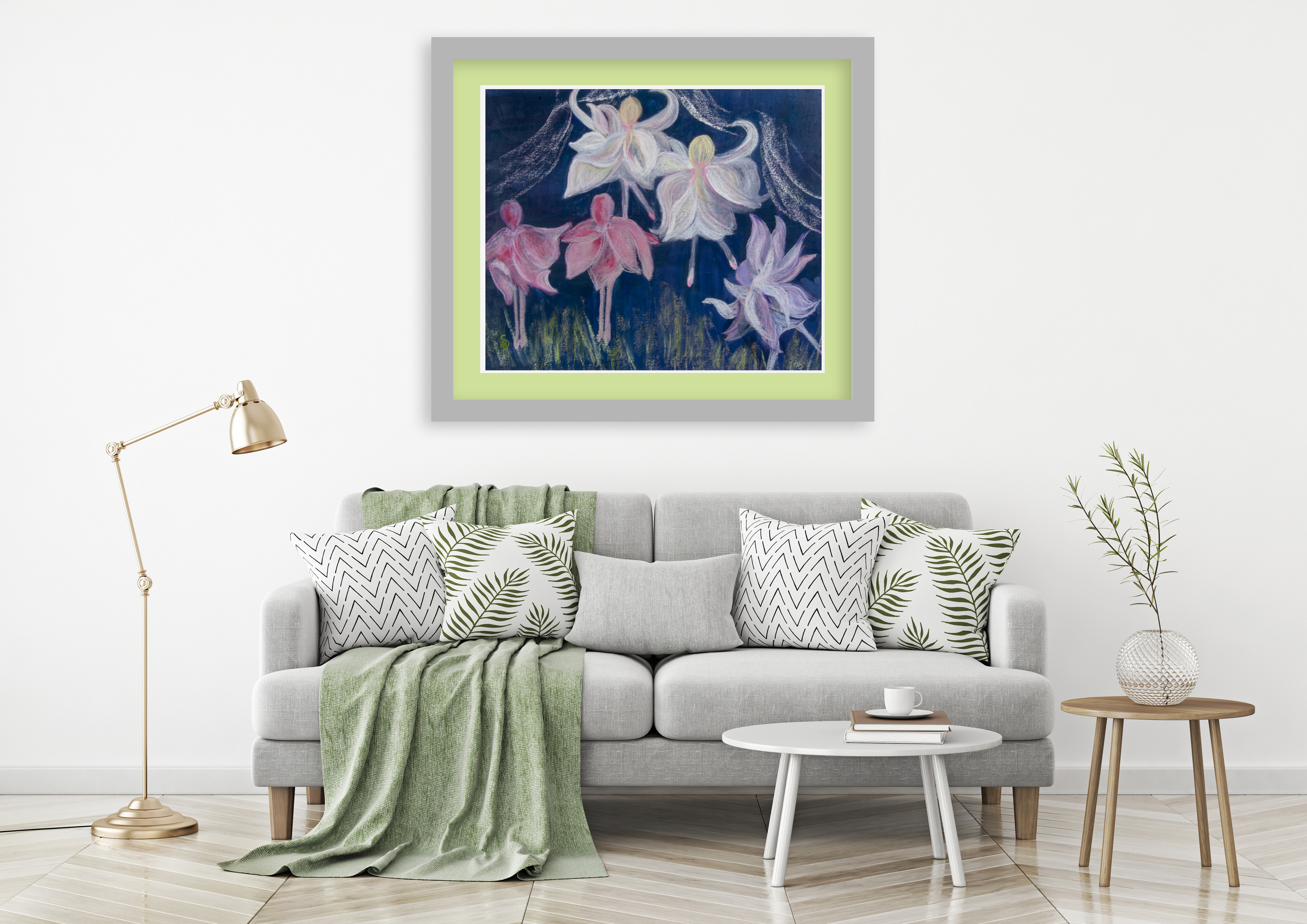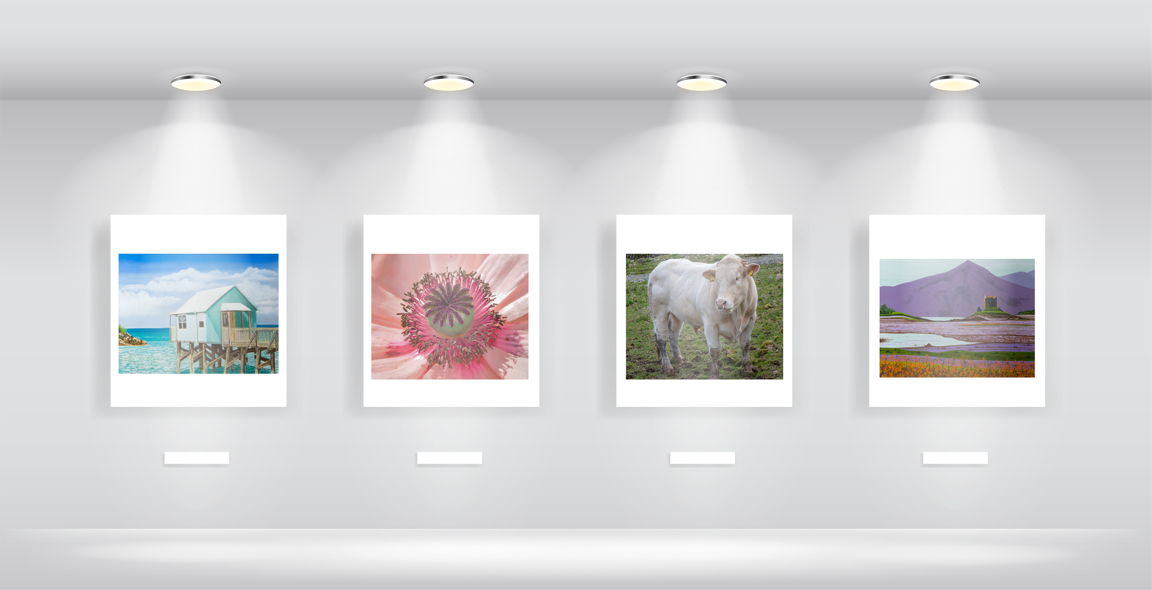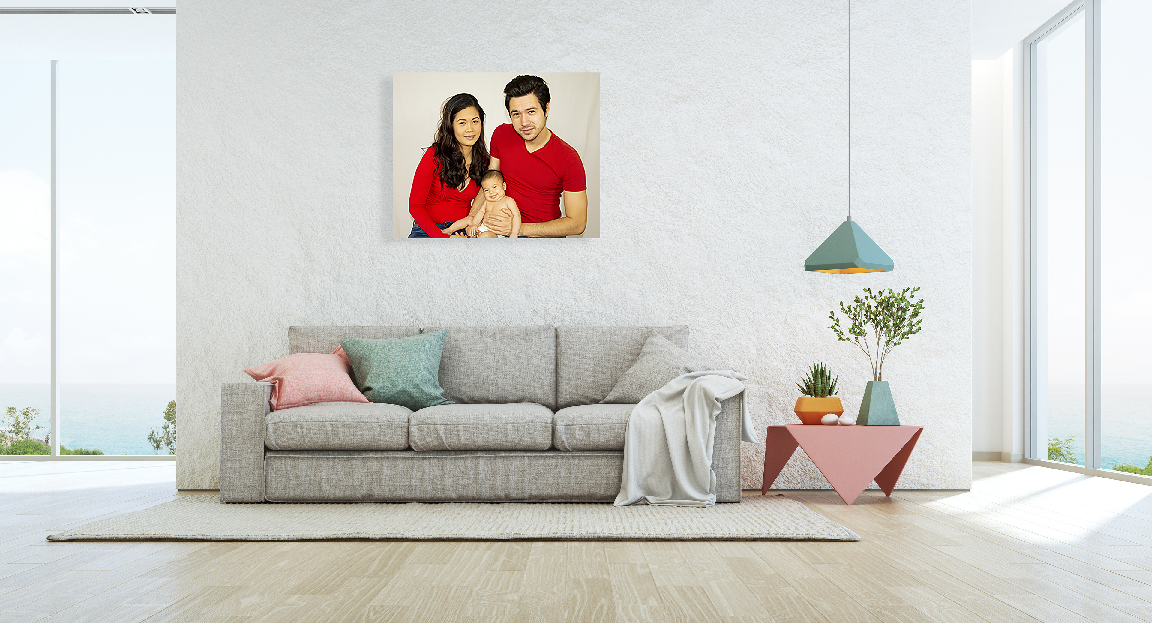Made with Adobe Photoshop and Illustrator - Mock up living rooms showing Art of local artist work.