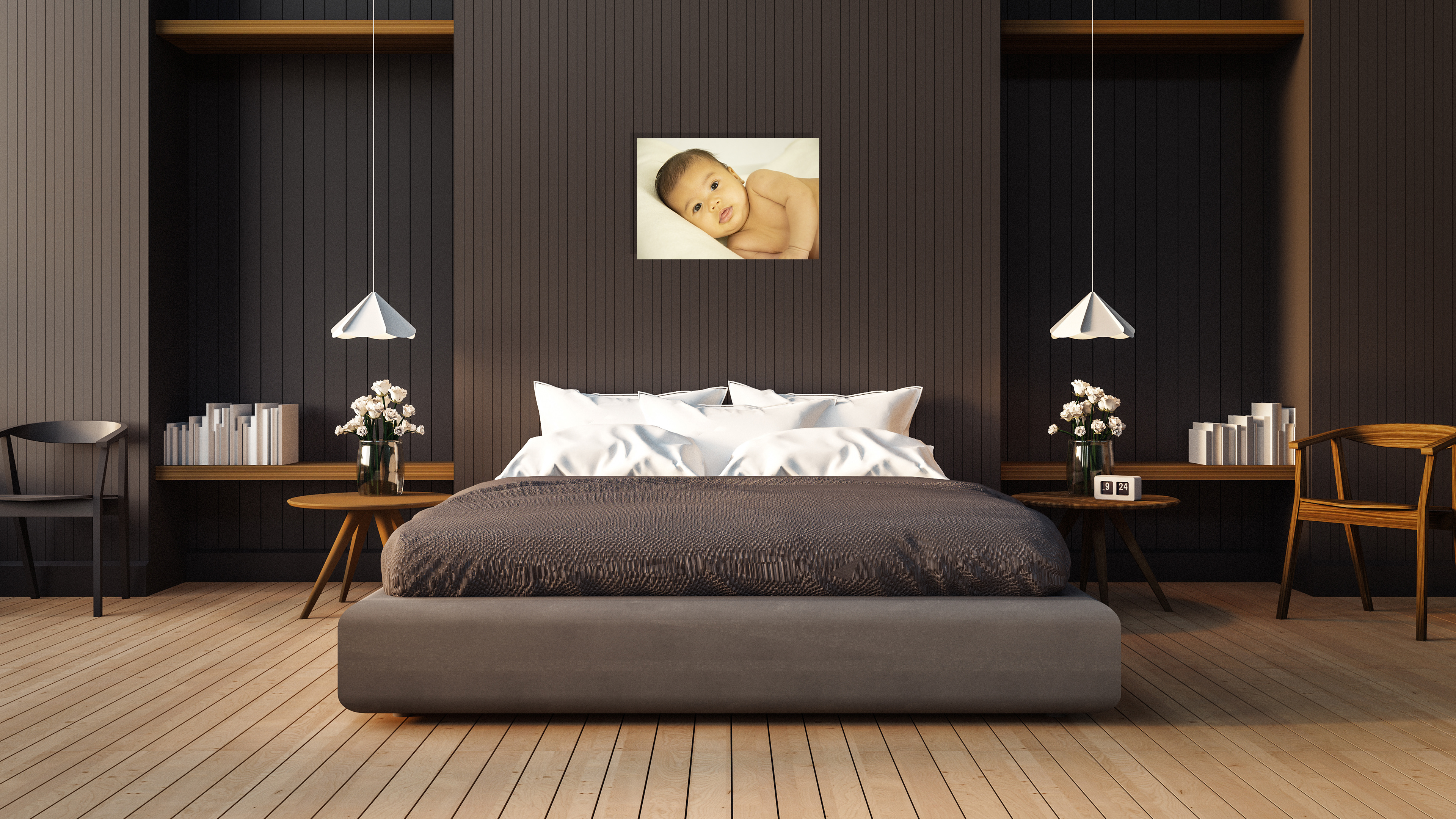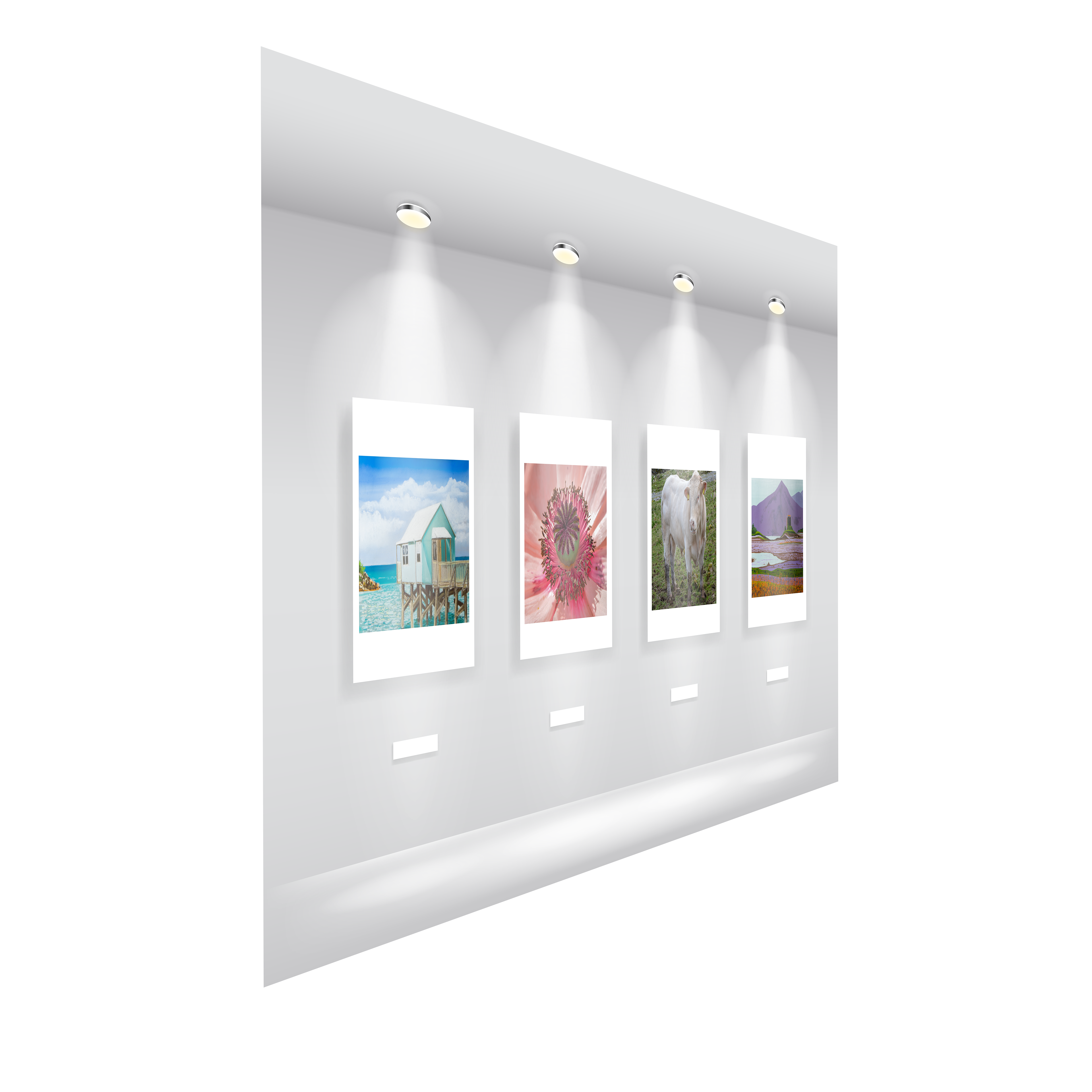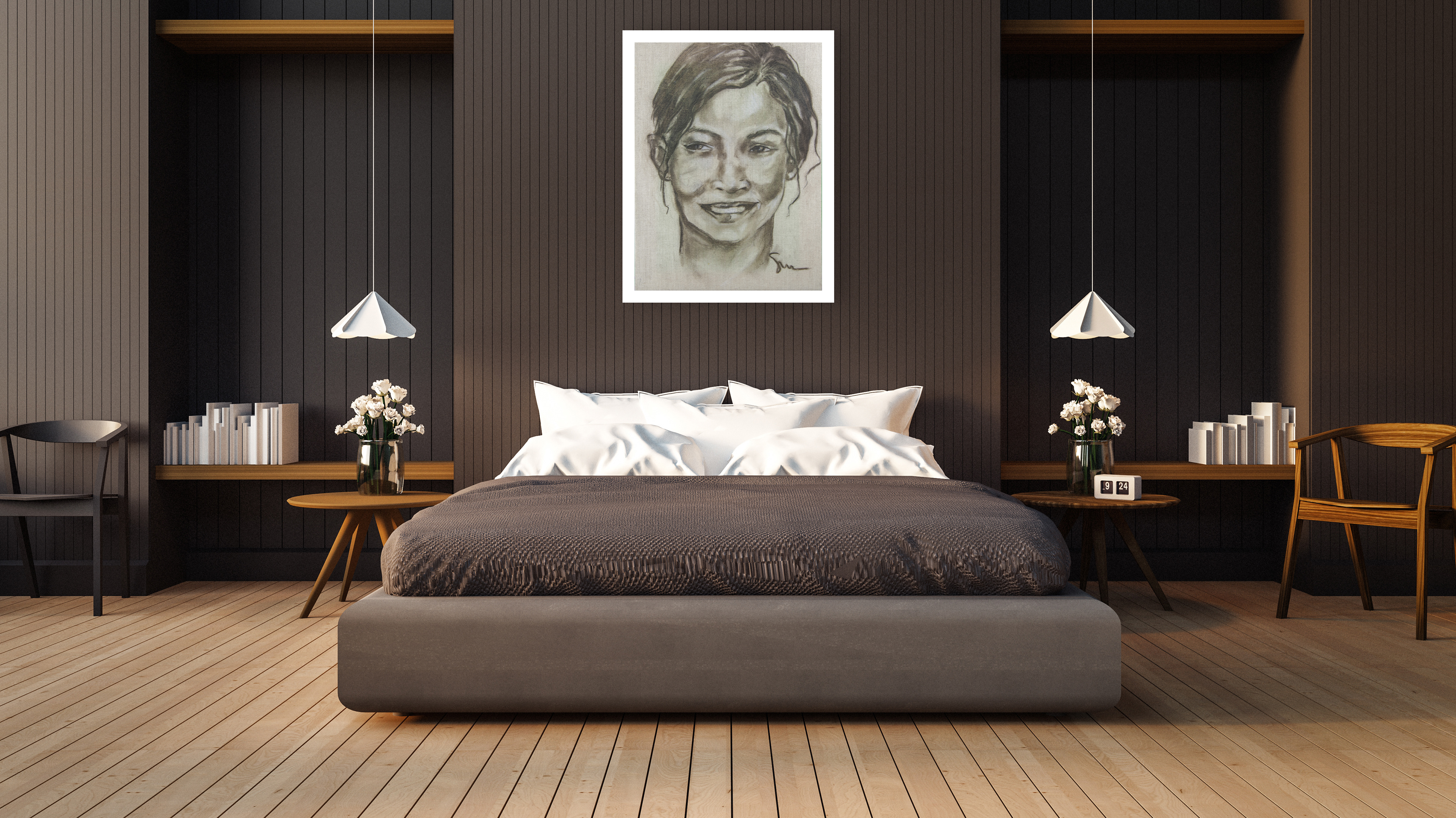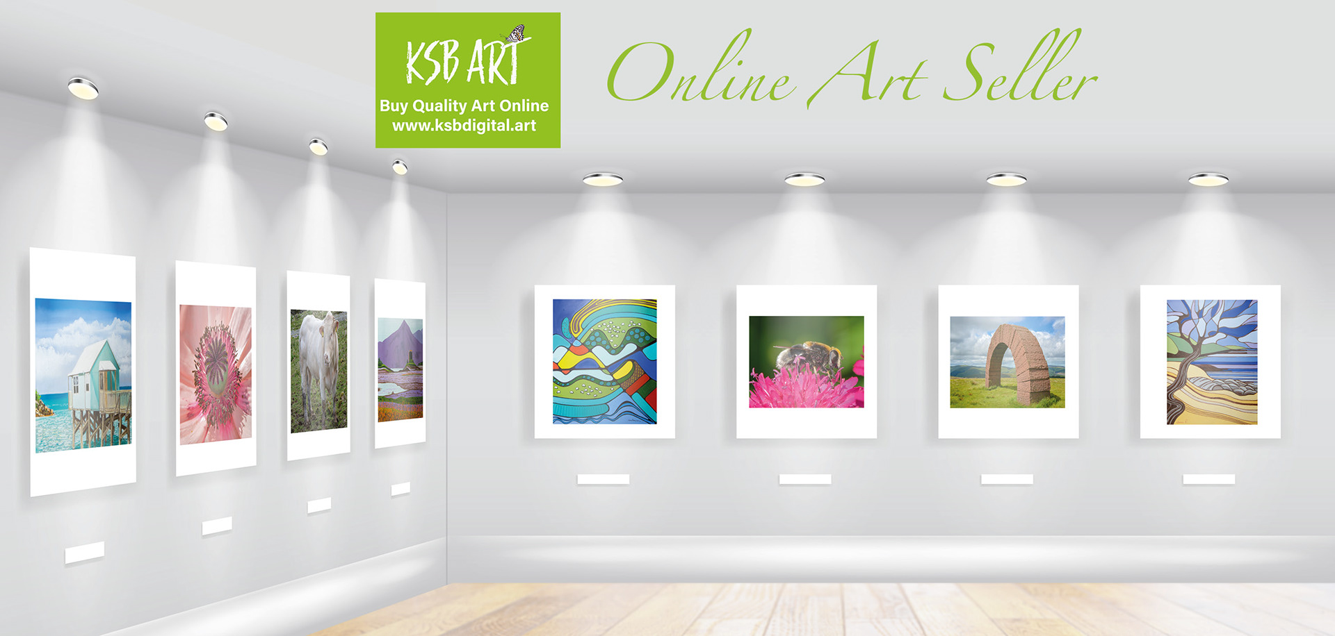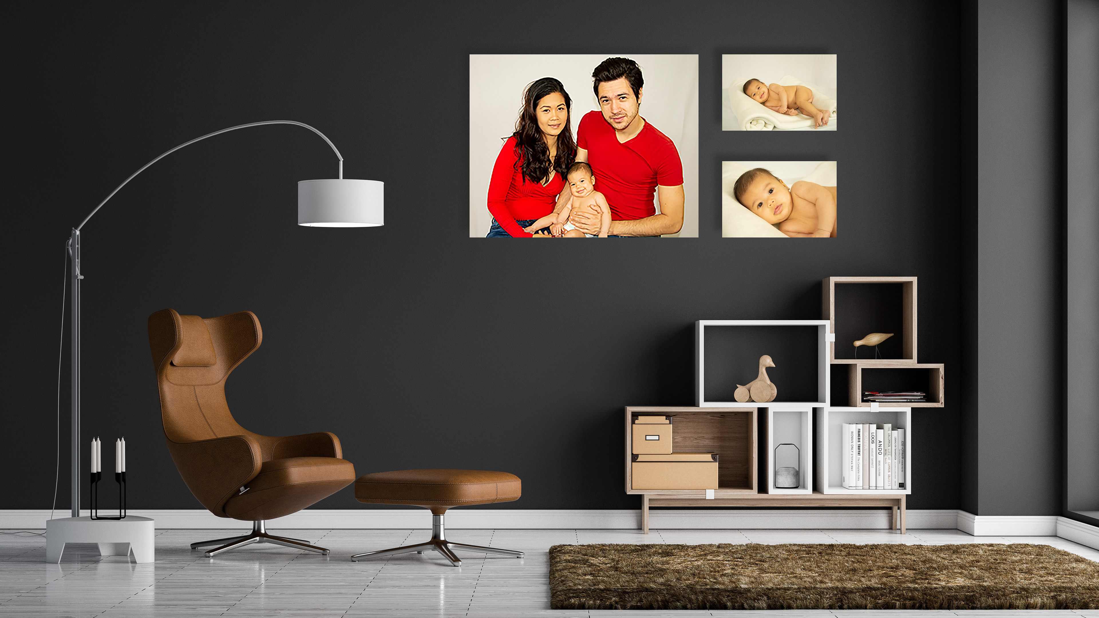 Made with Adobe Photoshop and Illustrator - Mock up living rooms showing Art of local artist work.